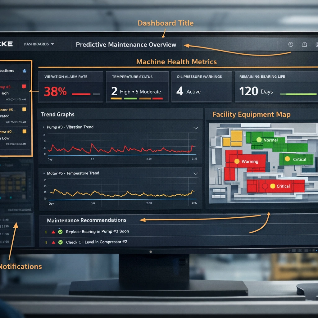 In older facilities — and this is the situation many entrepreneurs actually face — the machines themselves are not instrumented. The first step in those cases is retrofitting sensors onto existing equipment. This is more accessible than it sounds. Clip-on vibration sensors, wireless temperature probes, and current transducers can be attached to most legacy machines without modifying the equipment itself.