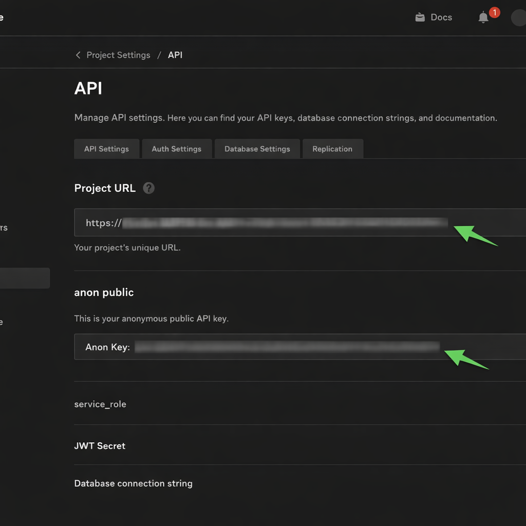 Navigate to app.supabase.com and click “New project.” Choose your organization, give the project a name, set a database password, and select a region close to your users. Once the project is provisioned — this takes about two minutes — go to Project Settings, then API. You will find two values you need: your project URL and your anon public key.