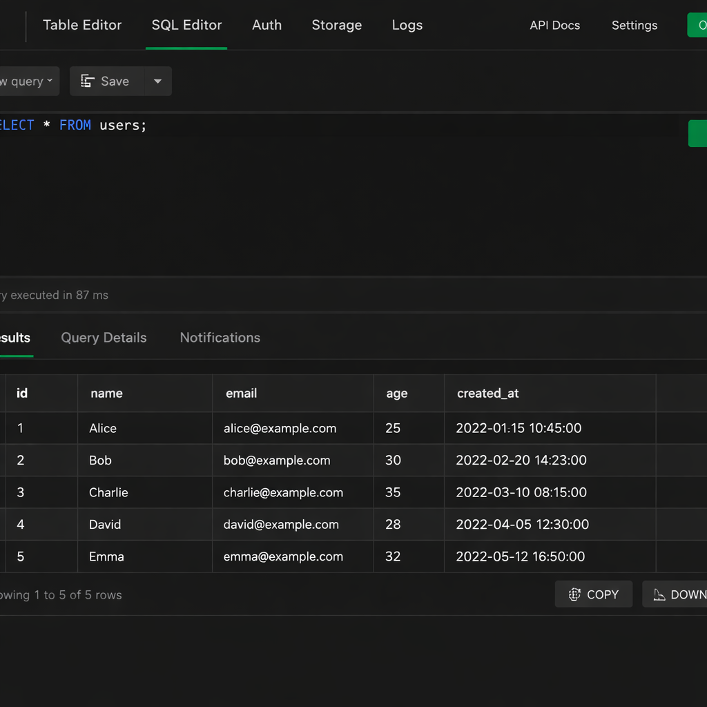 The Supabase syntax is intentionally similar to SQL. If you have worked with any SQL database before, the query builder will feel familiar immediately. Firebase’s syntax is more abstracted — you work with collections and documents rather than tables and rows.