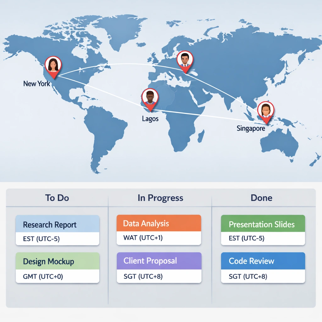 Timezone visibility. When your team spans multiple time zones, knowing when a teammate is available changes how you sequence work. Some platforms display working hours or availability status. Others integrate with calendar tools to surface that information automatically.