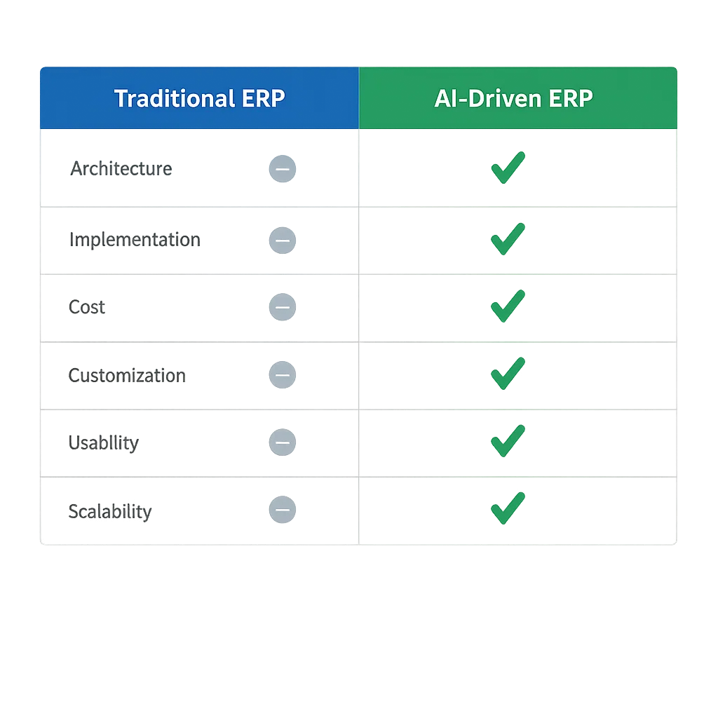 The gap between AI-driven and traditional ERP is not just a technology gap. It is a philosophy gap. Traditional platforms were built around the assumption that humans interpret data and make all decisions. AI-driven platforms are built around the assumption that the system should handle the routine so that humans can focus on the consequential.