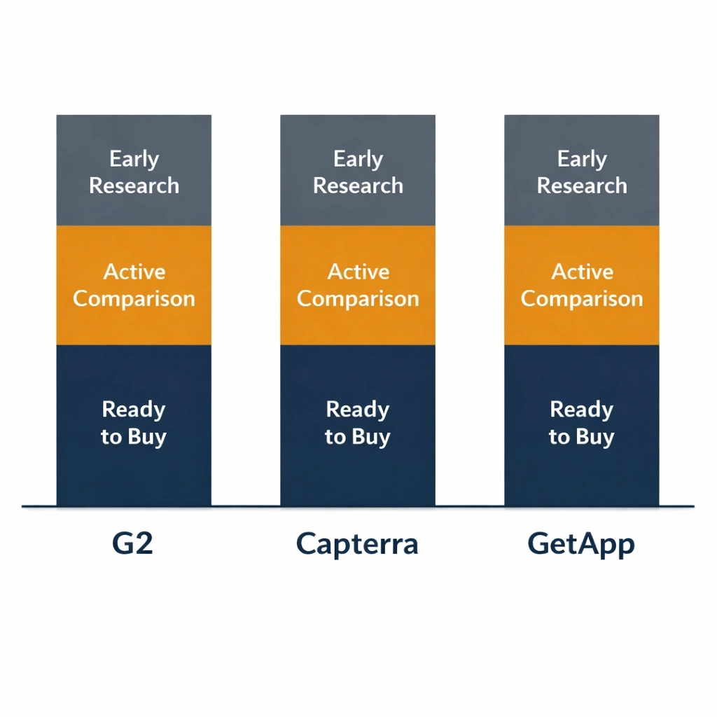 Traffic volume is a vanity metric if the buyers arriving on your profile are not the ones who purchase your product. This is where the G2 vs Capterra vs GetApp comparison becomes genuinely strategic.