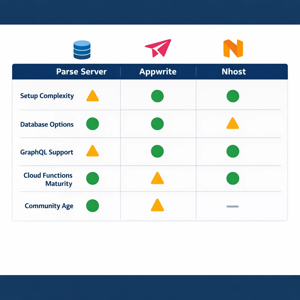 The complete guide to open-source BaaS self-hosting: Appwrite, Nhost, and Parse covers how Parse compares to Appwrite and Nhost across the full feature set. The short version is that Parse trades some of the newer platforms’ convenience-first design for flexibility and maturity — a tradeoff that favors certain product types significantly.