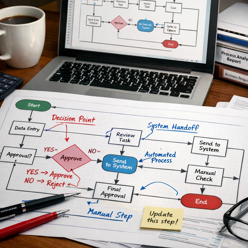 Business process mapping means documenting how your company actually operates today — not how it is supposed to operate according to an org chart, but how work actually flows from trigger to completion across every department you are bringing into SAP.