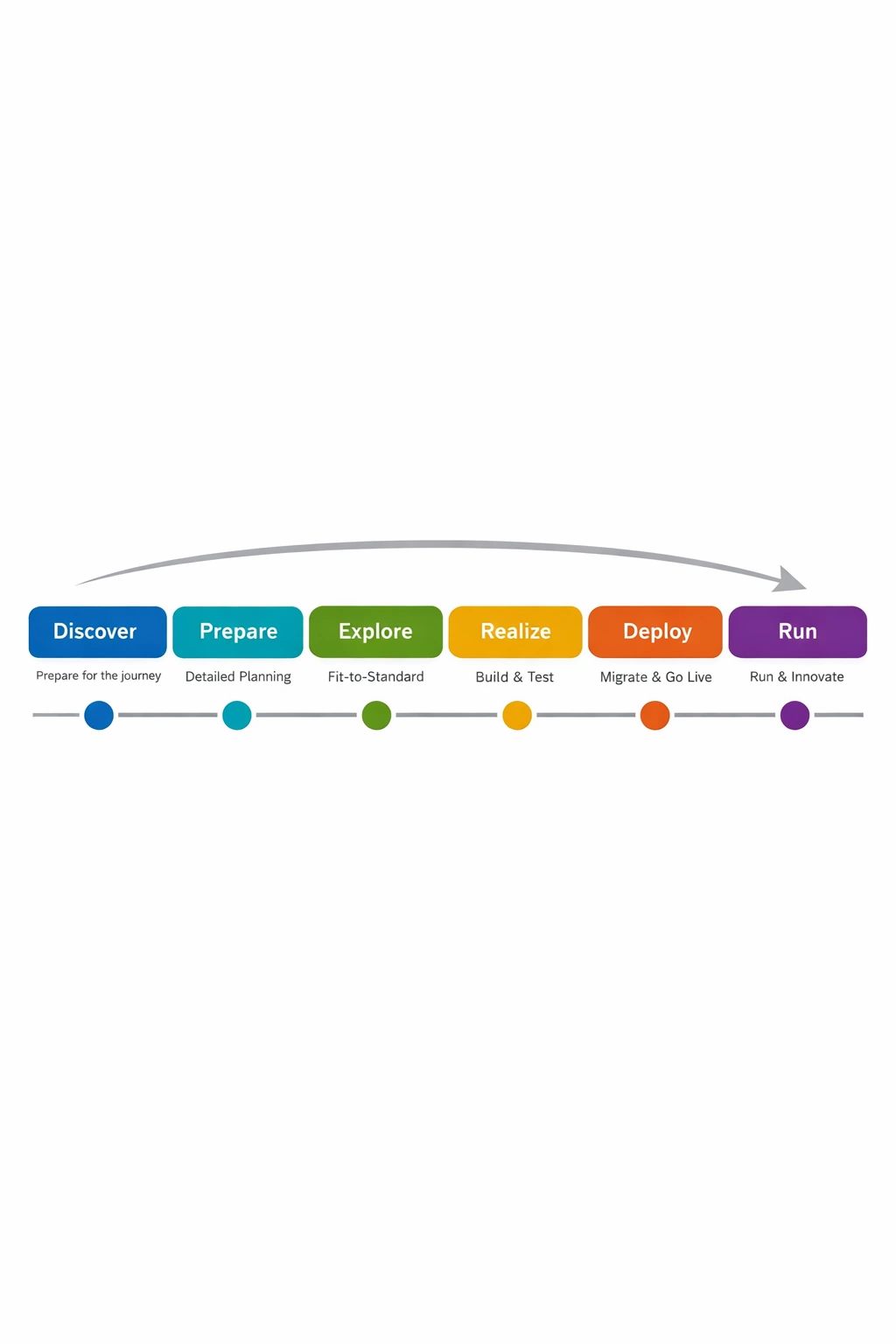 project preparation. Every SAP implementation begins with a preparation phase that defines scope, establishes governance, and aligns the organization on what success looks like. The deliverables include a project charter, an executive sponsor with real decision-making authority, a steering committee with cross-functional representation, and a timeline that includes realistic buffer for the phases most likely to run long.